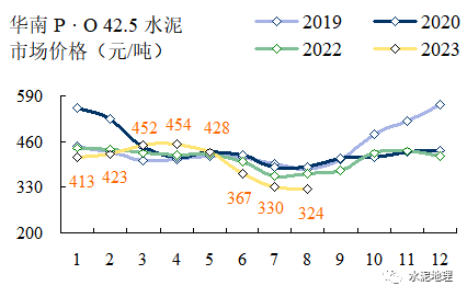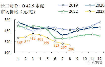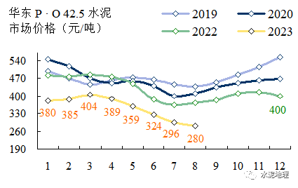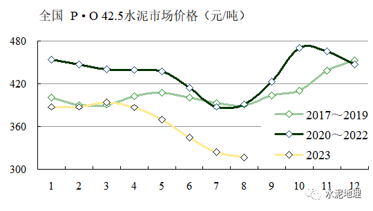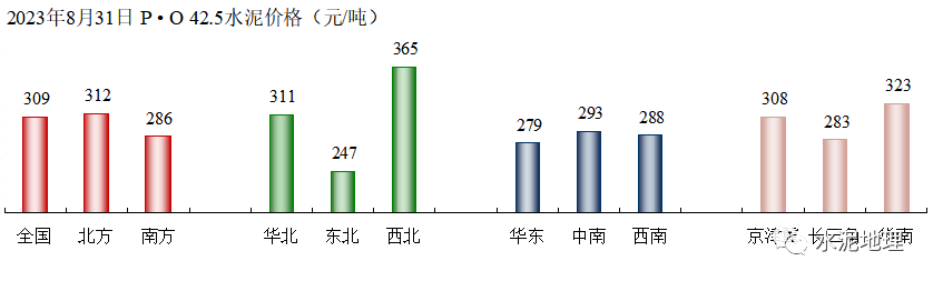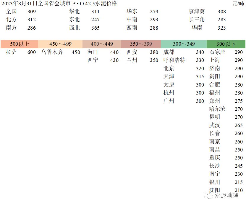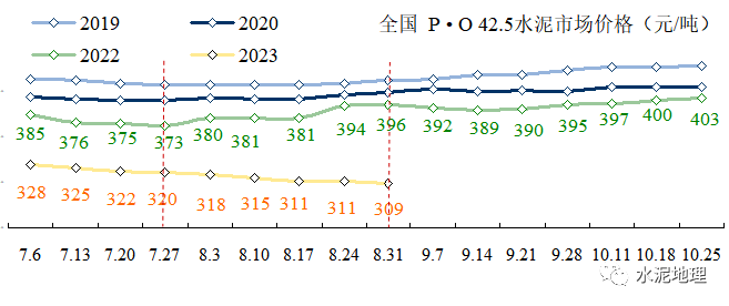 2023年8月31日,全国P • O 42.5水泥市场价格309元/吨,在价格连降20周后,上周持平后,再降2元/吨。![]()