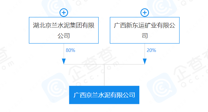 股权透视图显示,广西新东运水泥隶属于湖北京兰水泥集团,股东为湖北京兰水泥集团有限公司和广西新东运矿业有限公司。