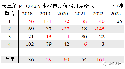 2023年1季度水泥价格较上年末价格上涨25元/吨,2018~2022年同期平均跌幅87元/吨。长三角2023年初水泥价格已在底部,2023年1季度水泥价格底部拉涨成功。![]()