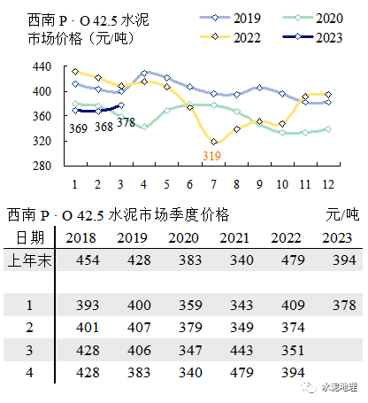 西南,2023年1季度收官价格378元/吨,较2018~2022年同期平均价格381元/吨,基本持平,高于2020、2021年。![]()