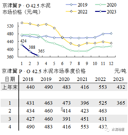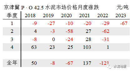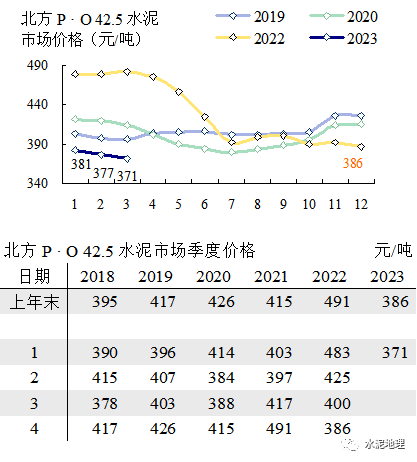 2023年1季度水泥价格较上年末价格上下跌67元/吨,大大高于2018~2022年同期平均跌幅19元/吨水平。4月,北方市场降进入旺季,能否步南方市场后尘,扭转水泥价格下滑态势,引发市场关注。![]()