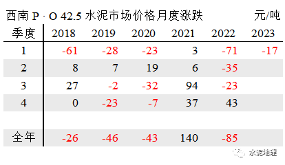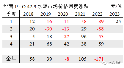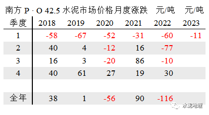 2023年1季度水泥价格较上年末价格下跌11元/吨,2018~2022年同期平均跌幅53元/吨。南方2023年初水泥价格已在底部,2023年1季度水泥价格抗跌性要好于其他年度。![]()