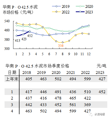 华南,2023年1季度收官价格452元/吨,较2018~2022年同期平均价格460元/吨,仅低8元/吨,高于2018、2019、2021年。![]()