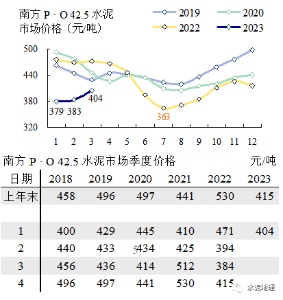 南方,2023年1季度收官价格404元/吨,较2018~2022年同期平均价格低出27元/吨。![]()