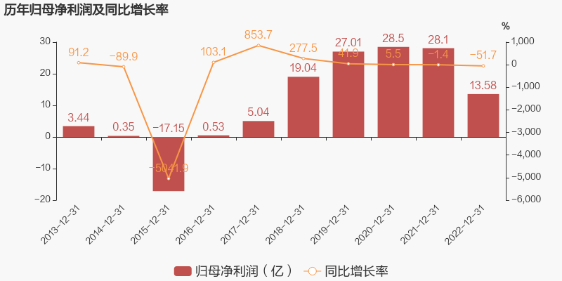 冀东东水泥于2023年3月28日晚间披露年报,公司2022年实现营业总收入345.44亿元,同比下降4.9%;实现归母净利润13.58亿元,同比下降51.7%,降幅较去年同期扩大;每股收益为0.51元。