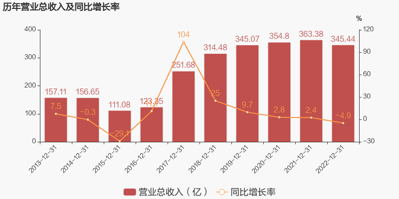 公司2022年营业成本274.68亿元,同比上升3.4%,营业收入同比下降4.9%,毛利率下降6.4%。期间费用率为15.5%,较上年升高0.9个百分点。经营性现金流大幅下降63.5%至22.69亿元。