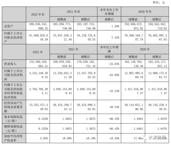 3月22日,天山股份发布2022年年度报告,报告期内公司实现营业收入132,580,520,664.31元,同比减少22.03%;归属于上市公司股东的净利润4,542,240,500.33元,同比减少63.80%。