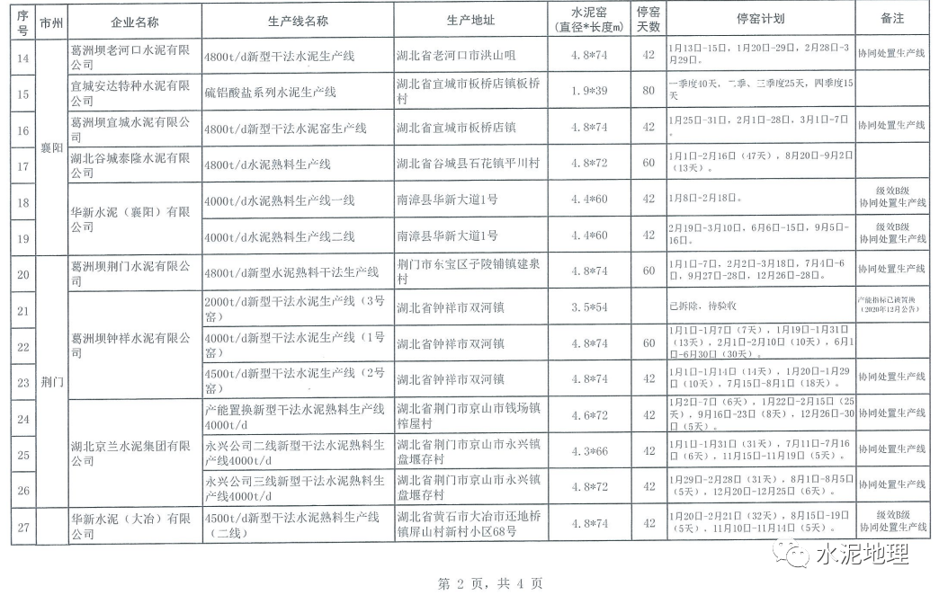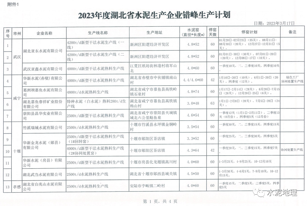 近日,湖北经信厅发布《2023年度湖北省水泥生产企业错峰生产计划公告》,公告对省内各水泥企业错峰停产做了详细安排。